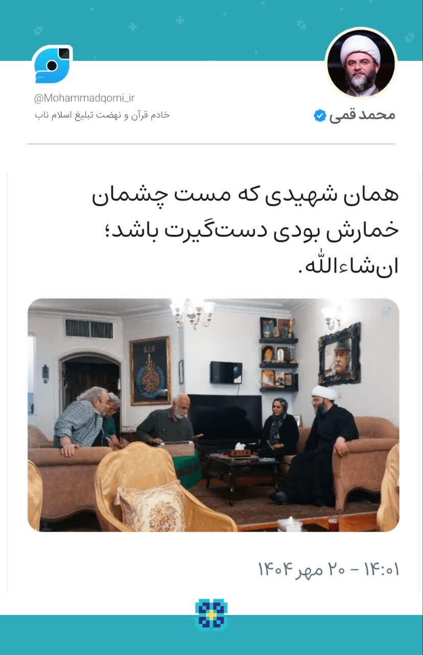 ۲۰ مهر | حجت‌الاسلام محمد قمی در صفحه شخصی خود نوشت