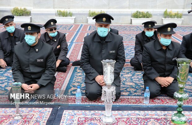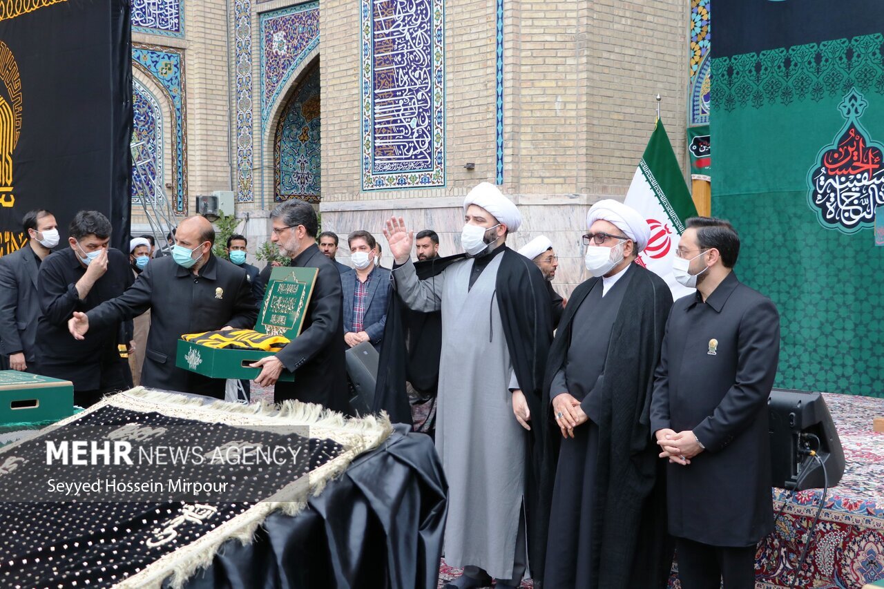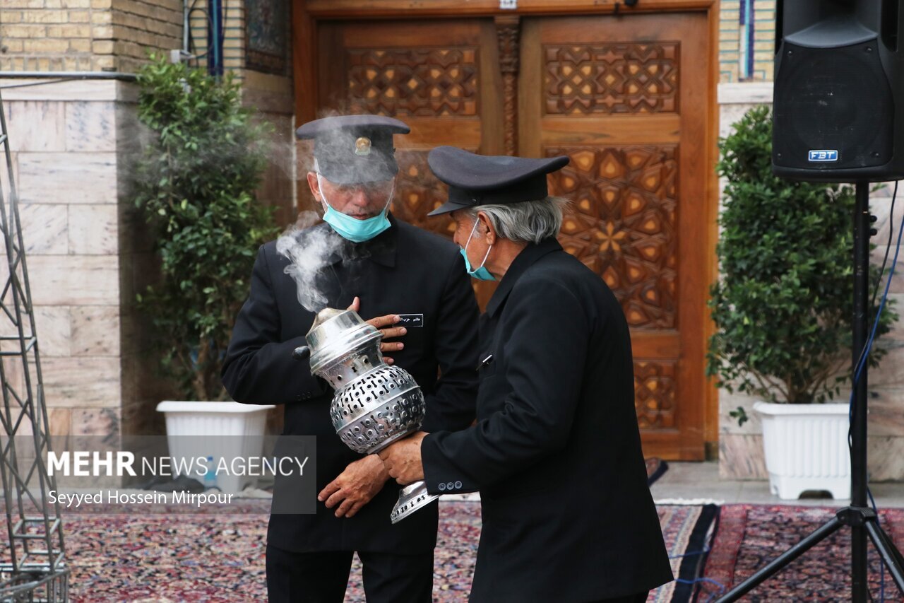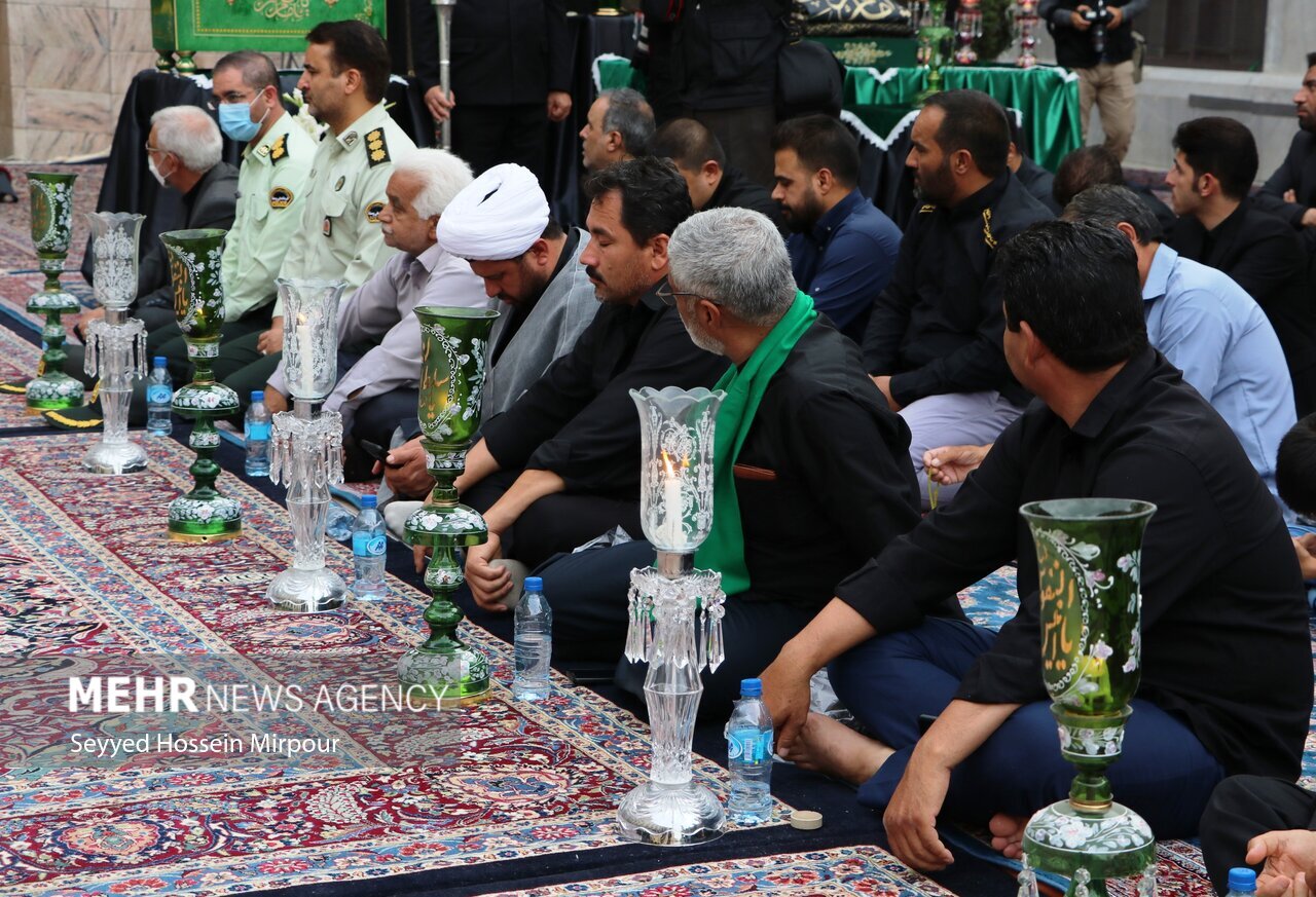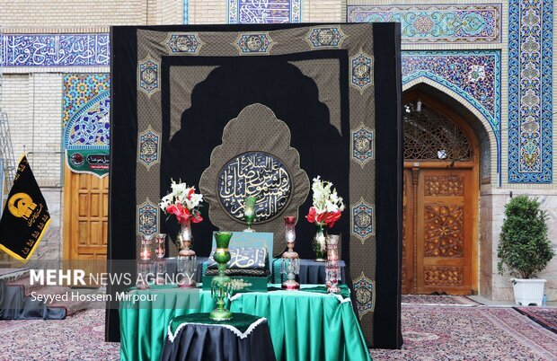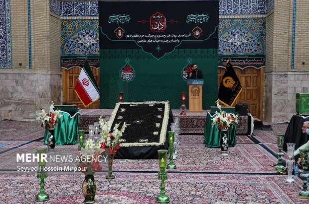 آئین سنتی اذن عزای حسینی در بست شیخ طبرسی حرم مطهر رضوی برگزار شد.