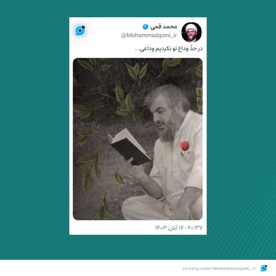 به گزارش روابط عمومی سازمان تبلیغات اسلامی، حجت الاسلام قمی، رئیس سازمان تبلیغات اسلامی در واکنش به چهلمین روز شهادت سید مقاومت، سید حسن نصرالله در شبکه ویراستی با انتشار طرح گرافیکی از هنرمند جوان لبنانی نوشت :