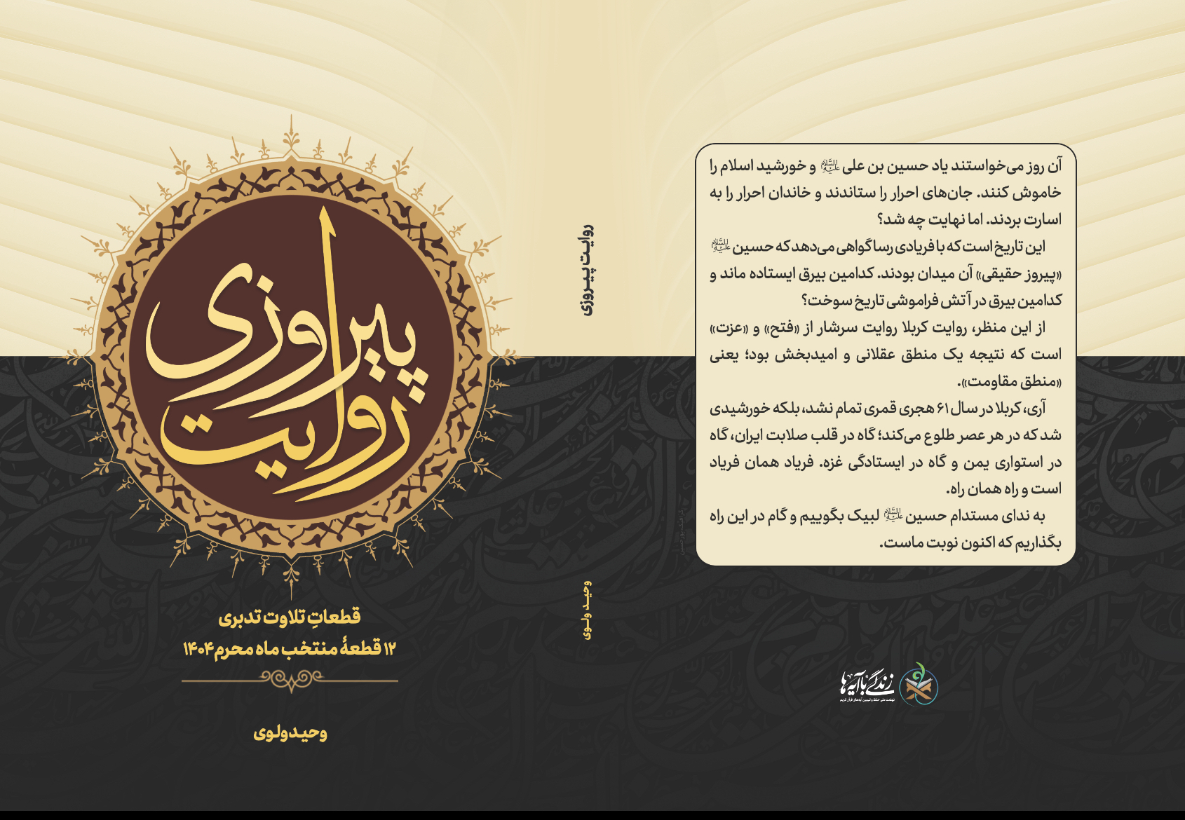 سازمان دارالقرآن با هدف تبیین آموزههای عاشورایی بر پایه قرآن، از اثر تازهای تحت عنوان «روایت پیروزی» رونمایی کرد. این کتاب کوچک اما تأثیرگذار، شامل ۱۲ قطعه تلاوت تدبری بر اساس ۱۲ آیه منتخب قرآن کریم است و میتواند بهعنوان مقدمه جلسات عزاداری محرم، محتوایی معنوی، مفهومی و منسجم در اختیار قاریان، سخنرانان و مربیان هیئات قرار دهد.